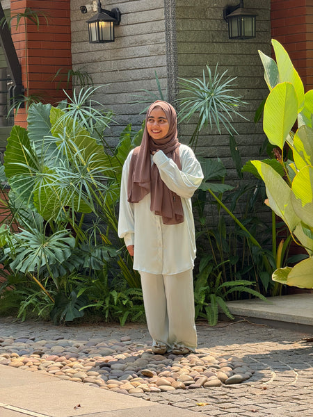 Designed to complement any abaya or hijab, the Satin Co-ords set effortlessly balances modesty and style. Its versatile silhouette allows you to dress it up with statement accessories or keep it simple for a refined, minimalist look. Whether you are attending a formal gathering or enjoying a casual day out, this satin co-ords set promises all-day comfort and timeless sophistication.