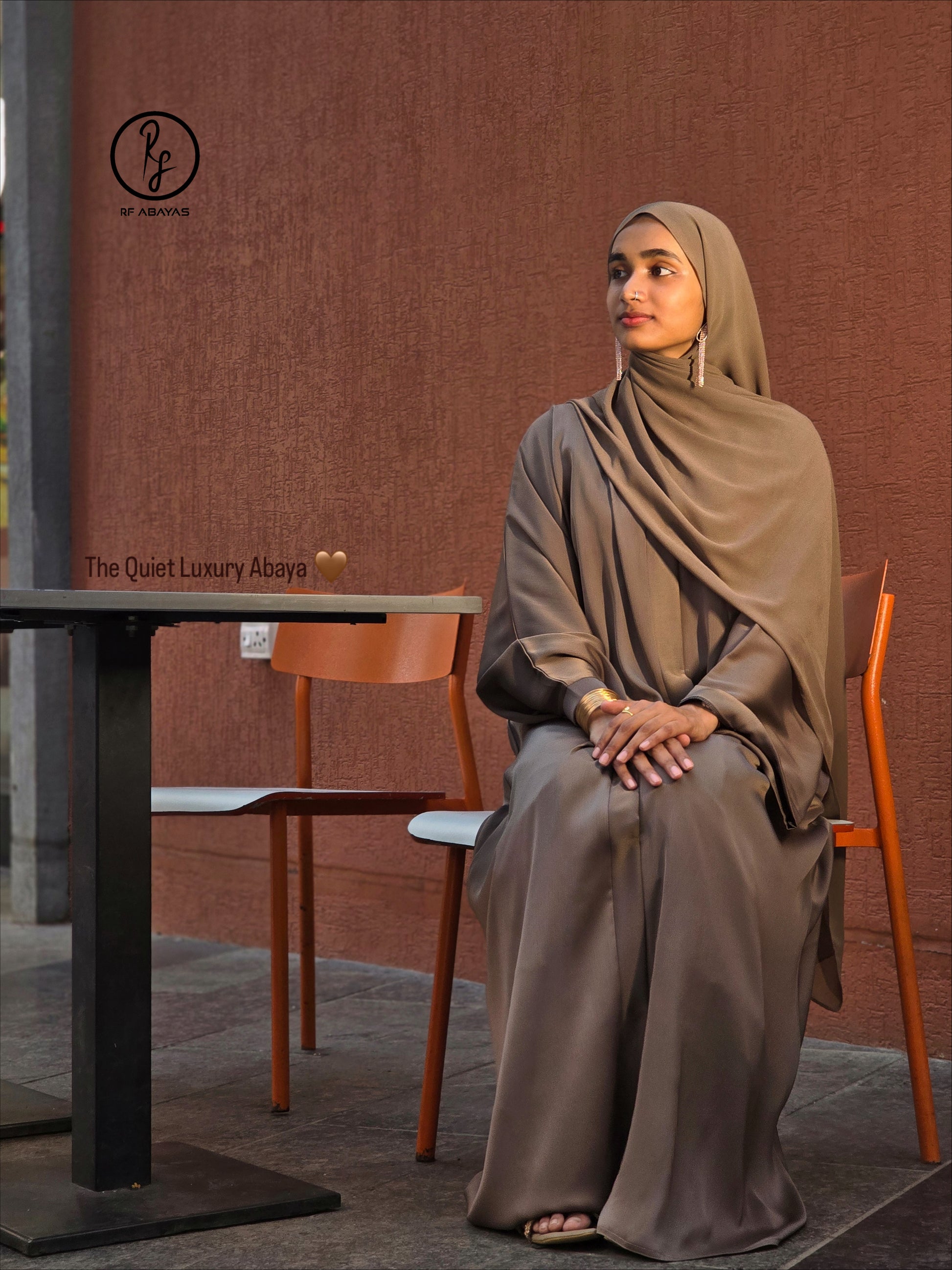 Imported TikTok Abaya in Pastel Taupe + Malaysian Georgette Hijab